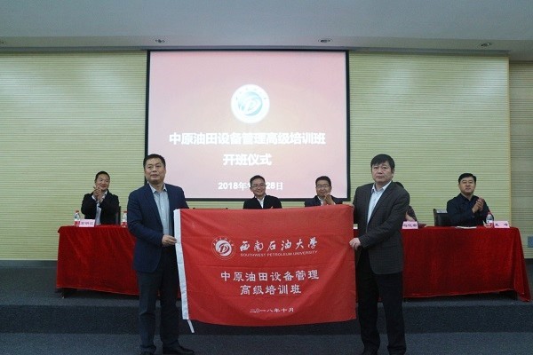 最后,學院黨委副書記姚偉寧為中原油田設備管理高級培訓班授旗。