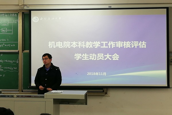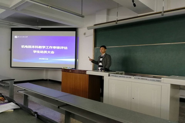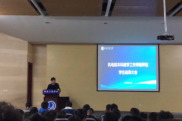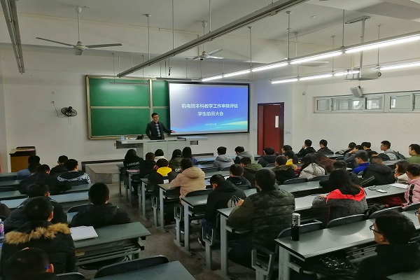 為迎接本科教學審核評估,機電工程學院針對全體本科生開展動員宣講。動員宣講部署會上,機電院黨委副書記向全體輔導員提出要求:1、宣講要面向全體同學,做到全覆蓋,無遺漏。2、宣講要透徹,要講明白審核評估的概念與重要意義。3、宣講要和班風、學生、寢風建設相結合。