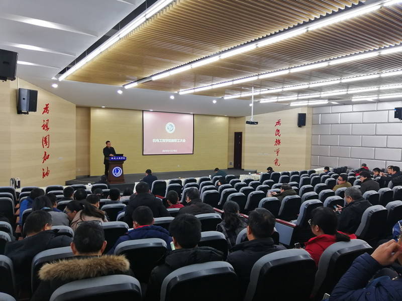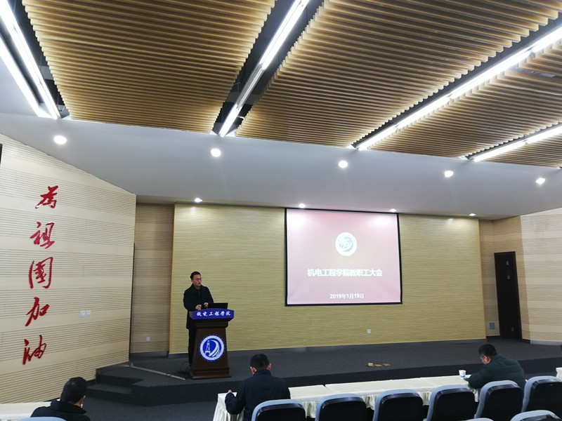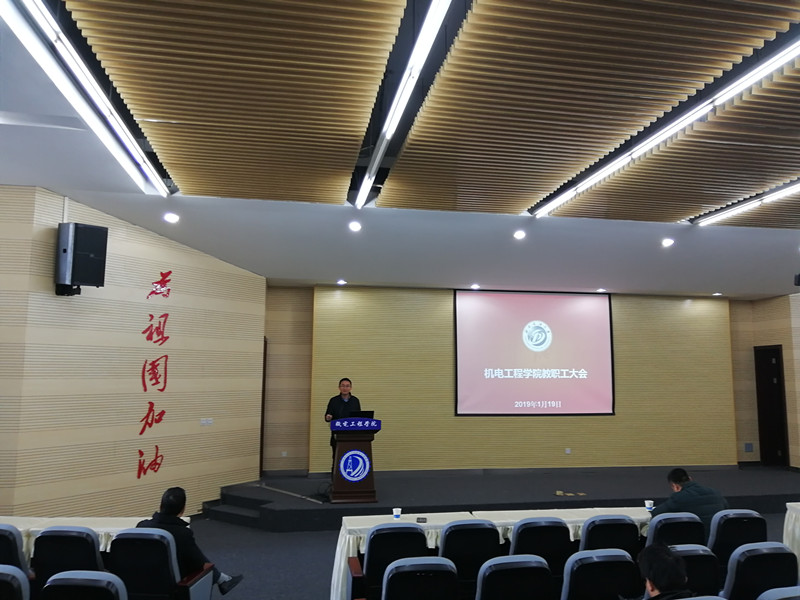 會上,李忠偉書記全面總結了學院在黨建工作、學生工作、工會活動等方面取得的成績,并對學院教師一年來的辛勤付出和無私奉獻表示衷心感謝。接著,祝效華院長表示2018年學院全體教職工腳踏實地、凝心聚力,在教學工作、科研項目、師資隊伍、人才培養等方面取得了一定的成就,站在新的歷史起點上,學院全體教職工要同舟致遠、勤學奮進,在新的一年取得新的更大的成績。同時,祝效華院長還通報了學院教代會通過的《機電工程學院2018年度績效分配方案》。隨后,副院長韓傳軍總結了2018年度本科和研究生教學取得的成績。副院長石明江總結學院學術科研、實驗室建設等方面的成果,并通報學校實驗室安全檢查情況,并部署寒假期間安全穩定工作。