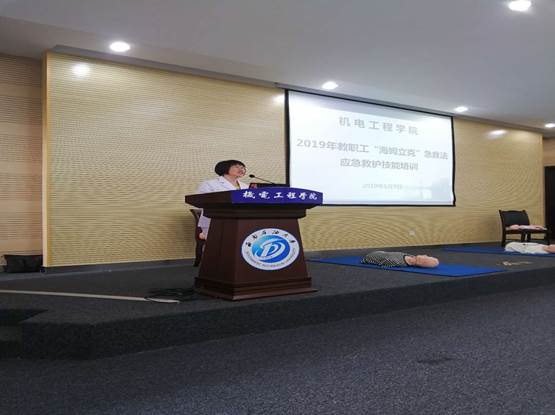 為增強教職工安全防范意識、提高教職工自我救護能力。5月9日下午,學院組織全院教職工開展“海姆立克”急救法應急救護技能培訓,以及教職員工心理健康教育講座。學校工會副主席黃昌利、女工委副主任曹軍,校醫院院長張繼紅、副院長王小慧,學院黨委書記李忠偉、院長祝效華、副院長石明江,以及學院全體教職工參加了此次技能培訓,培訓會由學院黨委書記李忠偉主持。