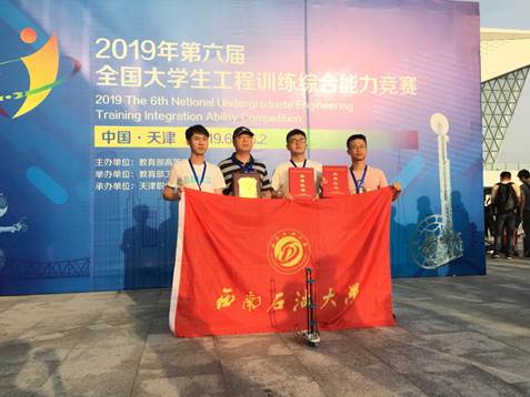 2019.6.1—2019.6.2,第六屆全國(guó)大學(xué)生工程訓(xùn)練綜合能力競(jìng)賽總決賽在天津職業(yè)技術(shù)師范大學(xué)舉行。大賽自2018年7月啟動(dòng)以來,歷經(jīng)校賽、省賽層層選拔,最終從全國(guó)29個(gè)省市498所學(xué)校3536支隊(duì)伍中遴選出148所高校的276支隊(duì)伍參加在天津職業(yè)技術(shù)師范大學(xué)舉辦的全國(guó)總決賽。由我院2016機(jī)械工程張全清、龍有紅、陳宇杭三位同學(xué)組成的團(tuán)隊(duì)經(jīng)過激烈比拼獲得“S型賽道常規(guī)賽”全國(guó)特等獎(jiǎng)。全國(guó)該項(xiàng)目共17個(gè)特等獎(jiǎng),四川賽區(qū)僅我校團(tuán)隊(duì)獲此殊榮。