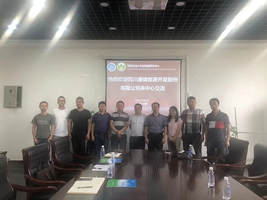 祝效華主任對四川康盛的到來表示熱烈歡迎,石祥超副教授對地熱能研究中心的研究領域與最新科研進展進行了介紹。四川康盛銷售總監劉總對公司的發展歷程、業務范圍等進行了介紹,張平健副總經理對公司的發展歷程和規劃進行了詳細說明,希望能與中心建立長期合作關系。