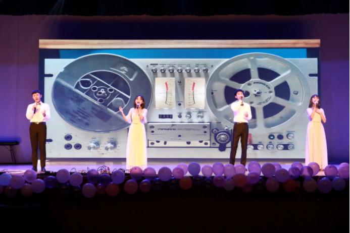 隨著“機電翹楚”頒獎儀式的結束,本次迎新晚會也進入了尾聲。最后,機電院教工代表合唱雙語《啊,朋友再見》,全體演職人員、觀眾高唱《我和我的祖國》,在昂揚歌聲中,晚會圓滿落下帷幕。