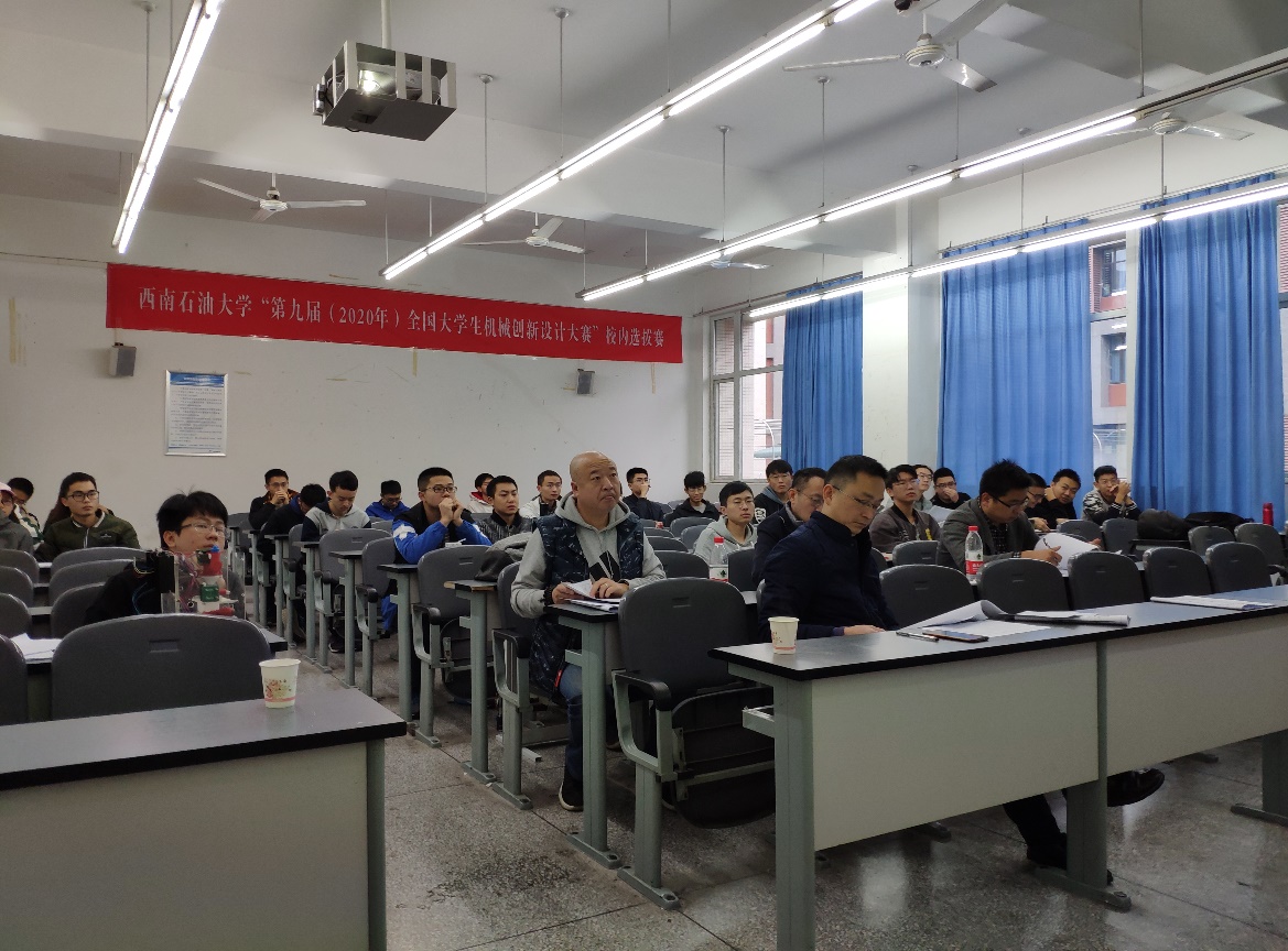 為了引導和培養我校大學生刻苦鉆研、勇于創新的精神,提高當代大學生的自主學習能力,動手能力和團隊合作能力,為優秀人才脫穎而出創造條件,同時為機械創新設計大賽省賽、國賽選拔優秀隊伍。機電工程學院于2019年11月16日,在明志樓A302、A303舉行“第九屆全國大學生機械創新設計大賽” 西南石油大學校內選拔賽(初賽)。機電工程學院教師陳波、陳振、王川、萬敏、李成兵、葉哲偉、石昌帥,工程訓練中心教師楊建忠、賴天華、劉德明出席此次大賽并擔任評委。