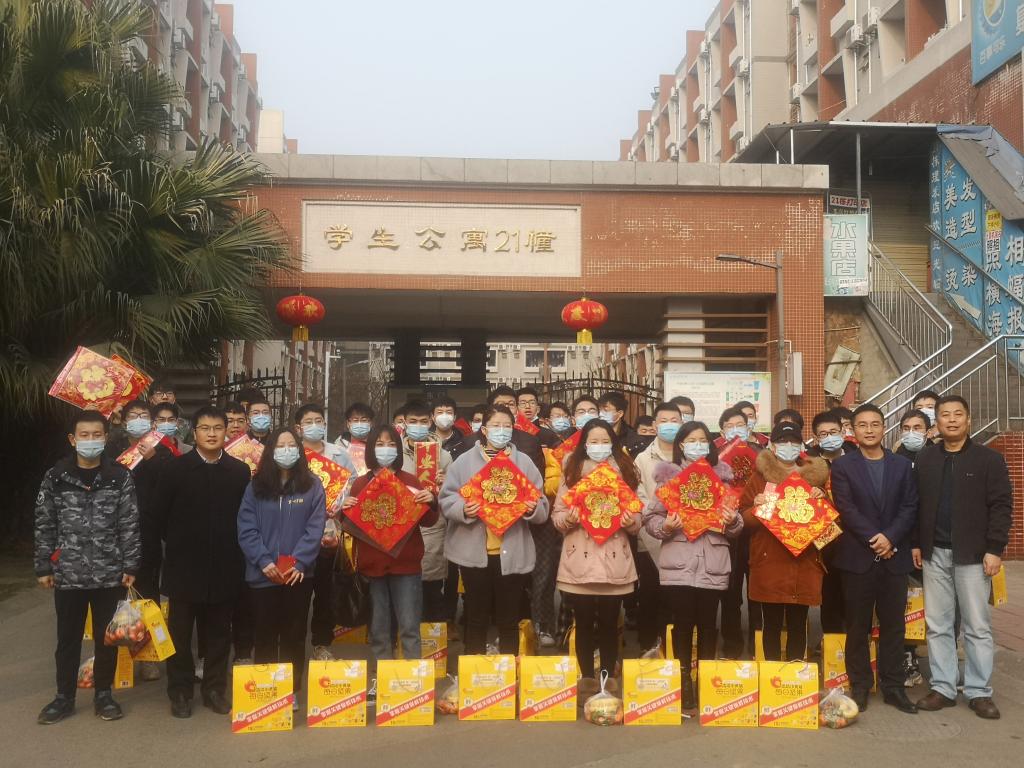 祝效華一行詳細詢問了學生留校期間的生活學習情況,叮囑學生嚴格遵守學校各項疫情防控規定,做好個人防護,注意宿舍安全;多同父母聯系,匯報在校情況,避免父母擔心;鼓勵同學們利用好假期在校時間,不斷充實自己,度過一個溫暖、充實、開心、祥和的假期和春節。隨后,學院各位領導和同學們一起,貼春聯和窗花,裝扮寢室,感受濃濃的年味。最后,領導們代表學校向留校學生送上慰問品并祝愿同學們新春佳節快樂。