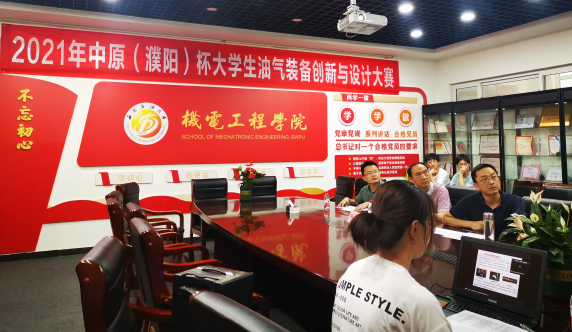 2021年6月28日晚,中原(濮陽)杯大學生油氣裝備創新與設計大賽初賽分為兩組分別在明志樓B504和A540舉辦,機電工程學院石明江老師,唐東林老師,蔣發光老師,張杰老師,葛亮老師,葉哲偉老師出席并擔任評委,參加比賽的37支隊伍由西南石油大學和中國石油大學(華東)組成。