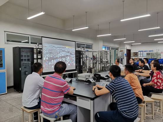7月1日上午8:00時,機電工程學院組織師生通過多種方式收看慶祝中國共產黨成立100周年大會現場直播。