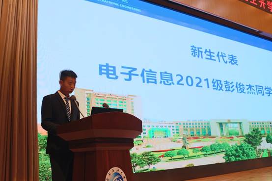 新生代表彭俊杰進行了發言,表示將在未來的三年中,刻苦學習,成為精英人才。同時,又會積極參加實踐活動,提升自己的綜合能力。