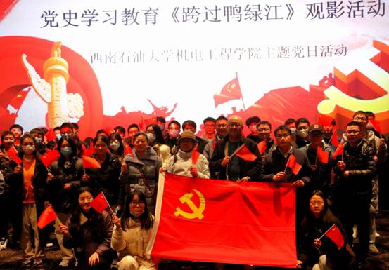 為傳承和弘揚中國共產黨精神,深入推進黨史學習教育,大力弘揚愛國精神,傳承紅色精神,引導廣大黨員不忘歷史,12月23日,機電工程學院組織黨員觀看紅色革命歷史題材電影《跨過鴨綠江》,回顧歷史,緬懷先烈。