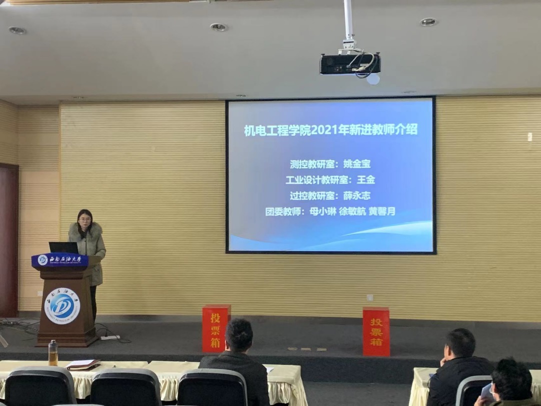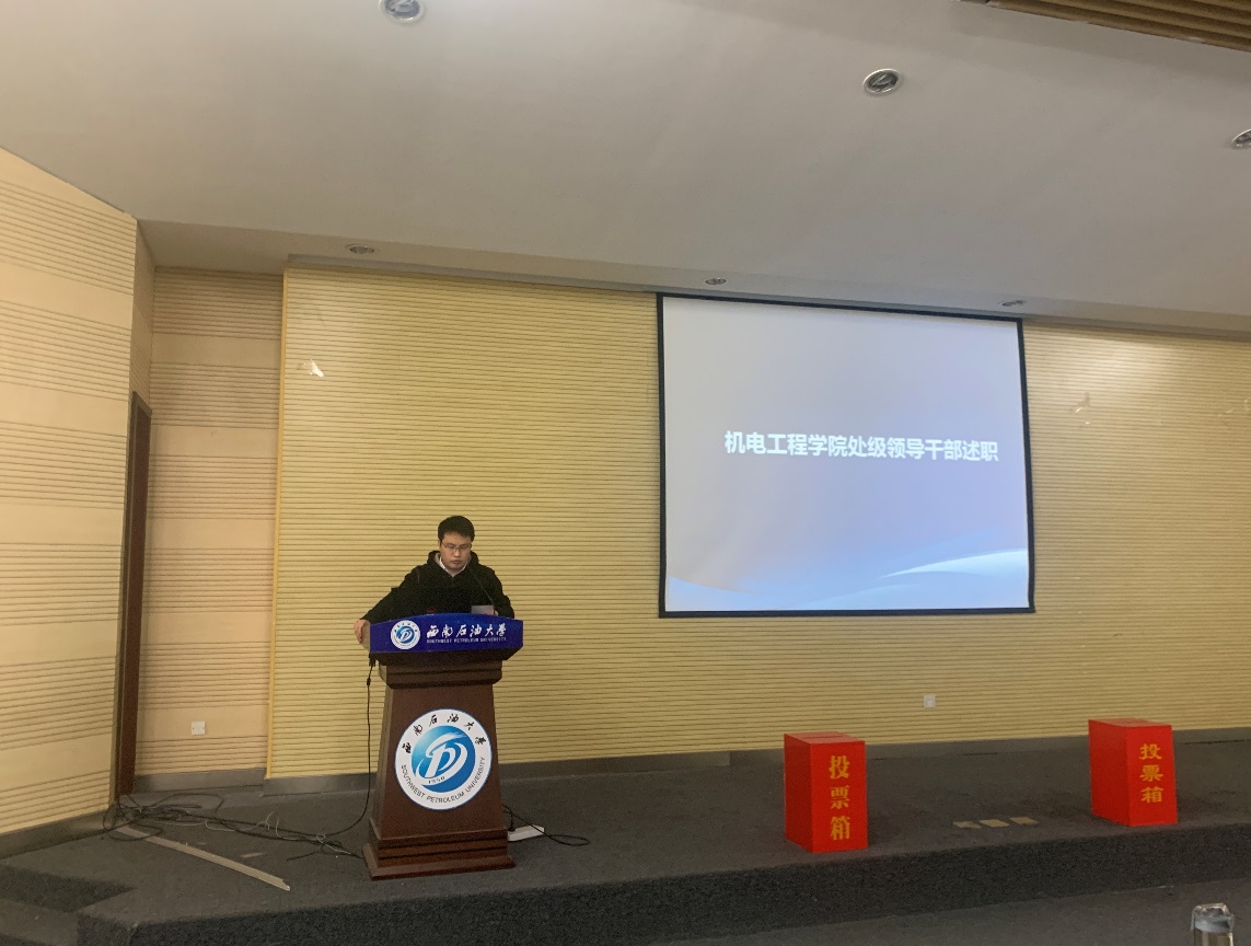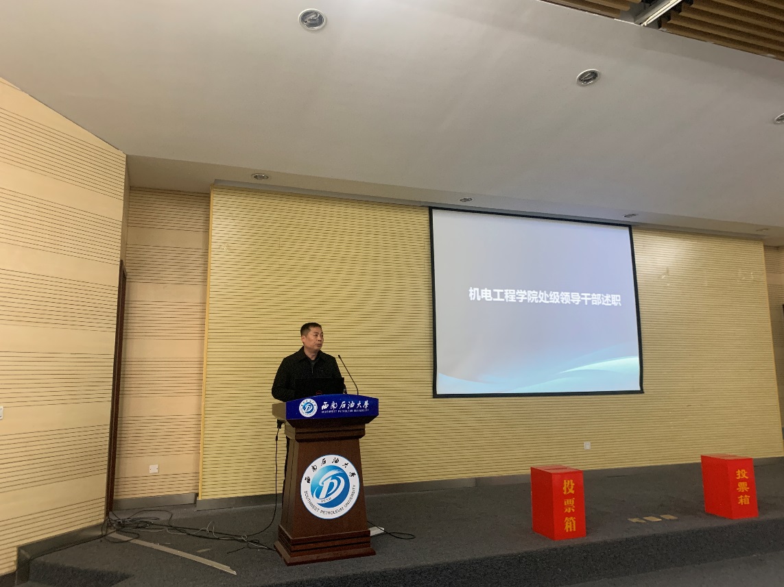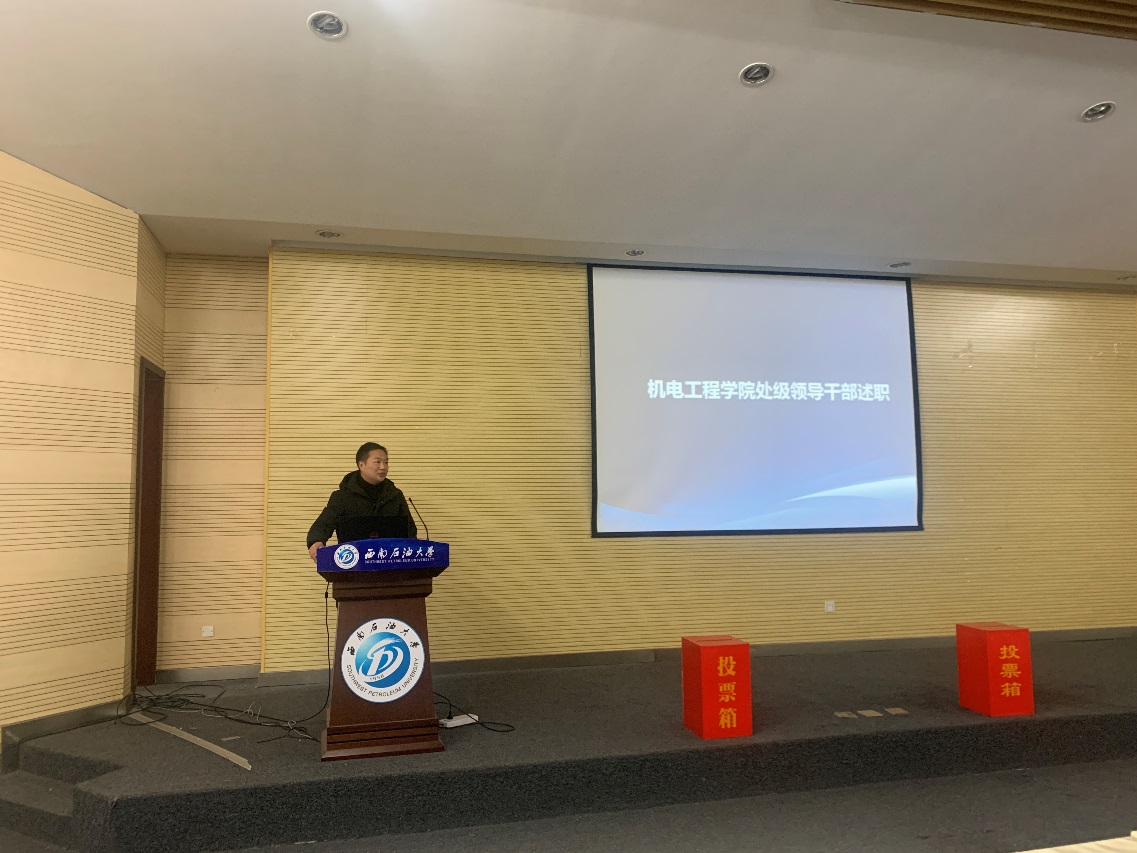 2021年12月30日下午,學(xué)院召開全院教職工大會(huì)暨處級(jí)領(lǐng)導(dǎo)干部述職測(cè)評(píng),學(xué)院領(lǐng)導(dǎo)班子、學(xué)院全體教職工參加本次會(huì)議。會(huì)議分為三個(gè)階段進(jìn)行。 會(huì)議第一階段,2021年新入職教職工進(jìn)行自我介紹,各位教職工詳細(xì)介紹了自己的自身情況與優(yōu)勢(shì)。李忠偉書記代表學(xué)院表達(dá)了對(duì)每一位教師的問候和關(guān)心,他總結(jié)時(shí)強(qiáng)調(diào),青年教師要盡快完成由學(xué)生到教師的角色轉(zhuǎn)換,要嚴(yán)于自律,關(guān)愛學(xué)生;誠(chéng)實(shí)做人、扎實(shí)做事、盡快適應(yīng)新的工作環(huán)境,努力做好教學(xué)科研本職工作,為學(xué)院的發(fā)展增光添彩。 會(huì)議第二階段,學(xué)院院長(zhǎng)祝效華對(duì)機(jī)電工程學(xué)院2021年取得的成果向全體教職工進(jìn)行了匯報(bào)說明。 會(huì)議第三階段,學(xué)院黨委書記李忠偉,院長(zhǎng)祝效華,黨委副書記、紀(jì)委書記姚偉寧,副院長(zhǎng)韓傳軍,副院長(zhǎng)石明江,能源裝備研究院院長(zhǎng)王國(guó)榮向?qū)W院全體教職工及學(xué)生代表進(jìn)行了2021年的工作匯報(bào)。在匯報(bào)結(jié)束后,全體學(xué)院教職工和學(xué)生代表填寫了考核民主測(cè)評(píng)表并進(jìn)行了投票。
