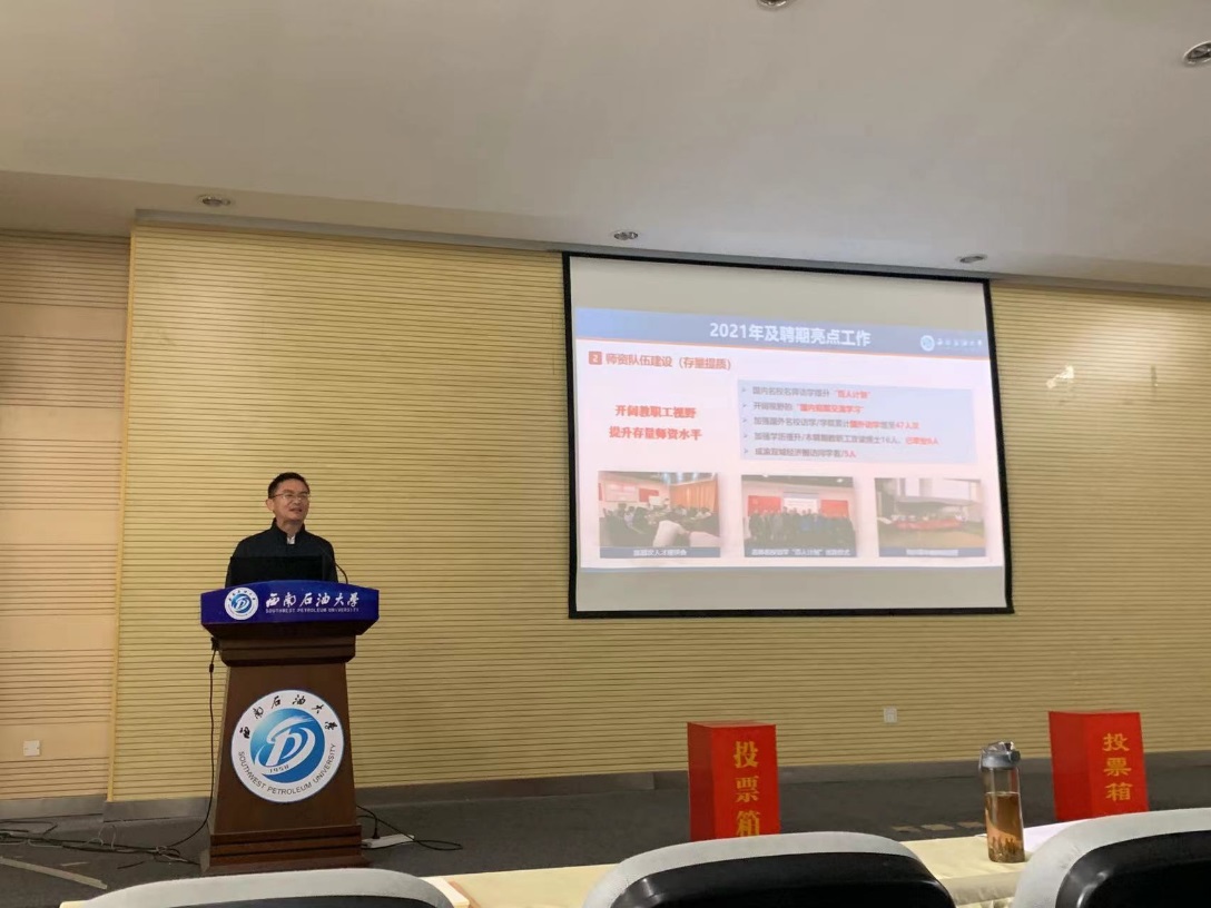 圖3:祝效華院長(zhǎng)匯報(bào)學(xué)院2021年成果并進(jìn)行述職