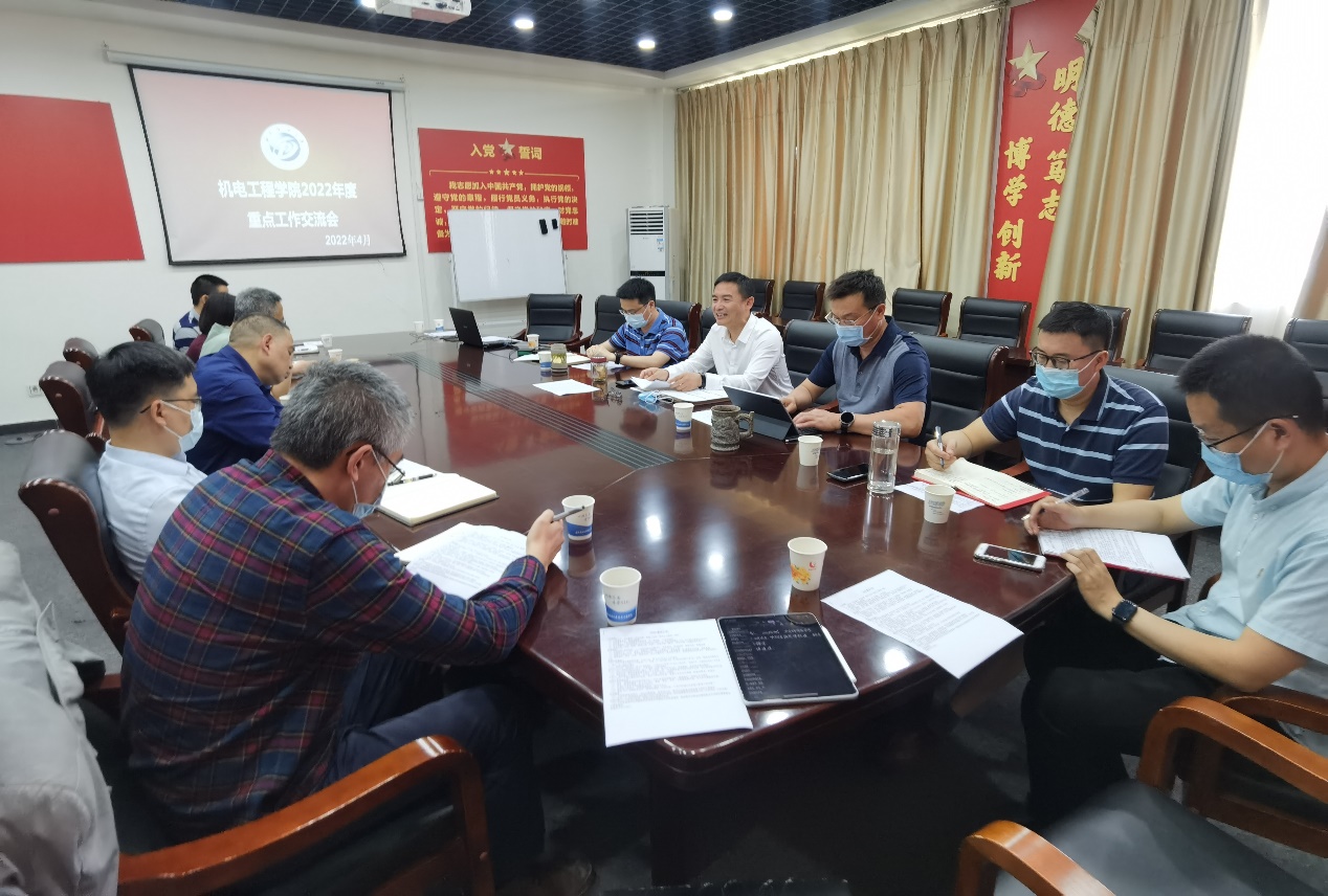 2022年4月12日下午,機(jī)電工程學(xué)院在明志樓B504召開學(xué)院2022年度重點(diǎn)工作推進(jìn)會(huì)。會(huì)議由院長祝效華主持,學(xué)院領(lǐng)導(dǎo)班子,全體教研室所主任參加會(huì)議。