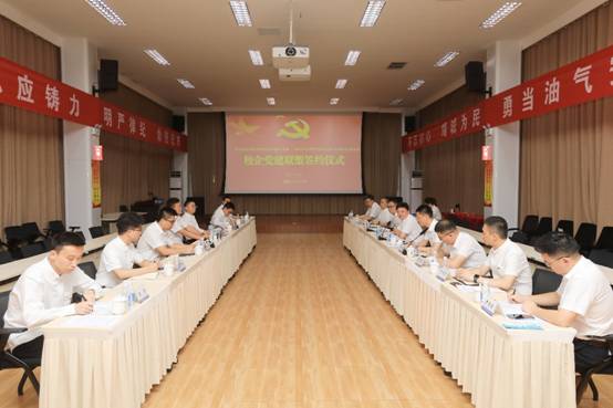 為全面落實習近平總書記對新時代基層黨建工作的要求,貫徹十九大報告提出的“深化產教融合、校企合作”理念,順應校企支部結對共建的時代發展趨勢,2022年5月25日下午,西南石油大學機電工程學院學院鉆井提速科研團隊黨支部(以下簡稱鉆井提速科研團隊黨支部)與中國石油井控應急救援響應中心救援作戰黨支部(以下簡稱救援作戰黨支部)充分發揮全國高校“百個研究生樣板黨支部”和中國石油集團公司基層建設“百面紅旗”黨支部的標桿作用,進行深入交流,并簽訂“黨建聯盟”協議書。機電工程學院黨委書記李忠偉、院長祝效華、鉆井提速科研團隊黨支部書記石昌帥以及支部委員和黨員代表前往中國石油集團川慶鉆探工程有限公司參與此次會議,井控應急救援響應中心代主任、代黨委書記羅園、副書記向曉彥、組織部部長周安文、救援作戰黨支部書記卿玉及對方支部委員和黨員代表出席參會。