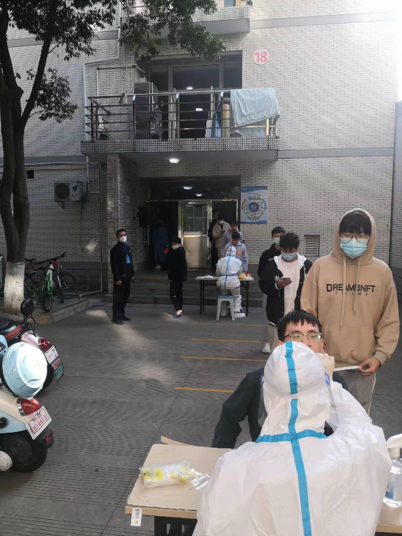 11月18日下午,學(xué)校接到新都區(qū)疾控中心通知,我校核酸混采出現(xiàn)陽(yáng)性,為切實(shí)保障廣大師生員工平安健康,學(xué)校立即啟動(dòng)應(yīng)急預(yù)案,對(duì)校園實(shí)施臨時(shí)管控措施,正常的教學(xué)工作按下了暫停鍵。機(jī)電工程學(xué)院黨委積極響應(yīng)學(xué)校號(hào)召,即刻成立“機(jī)電防疫先鋒隊(duì)”,黨員干部群眾齊上陣,一邊兼顧教學(xué)任務(wù),一邊做好教工志愿責(zé)任區(qū)和學(xué)生寢室服務(wù)保障工作,共筑疫情防控堅(jiān)固防線。