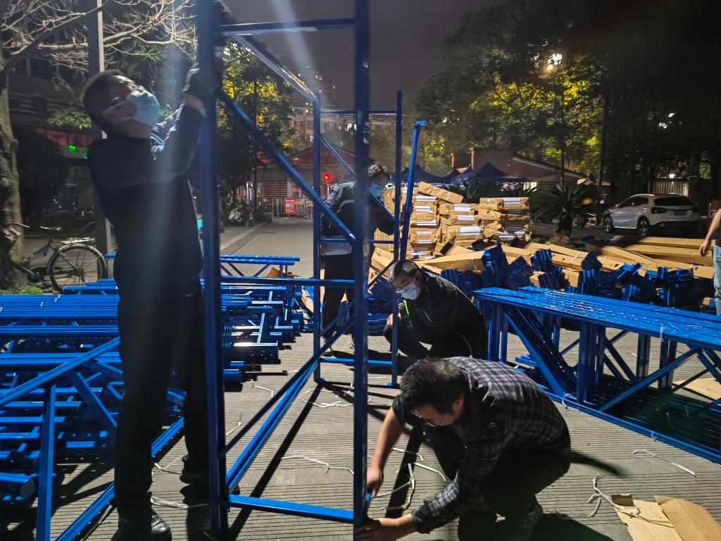 馬海峰、夏逢軍老師連夜參與搭建貨架