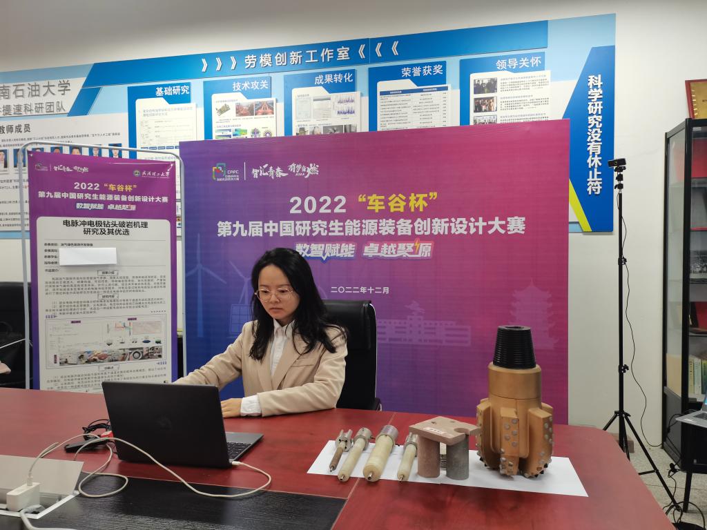 一等獎項目:《電脈沖電極鉆頭破巖機理研究及其優選》團隊參加線上答辯