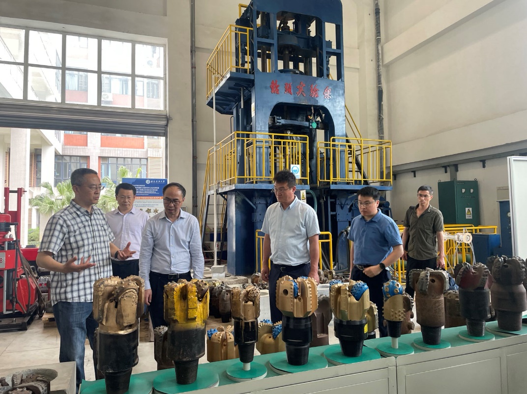 隨后,郭世一書記一行在學院黨委書記李忠偉、院長韓傳軍、副院長石明江的陪同下參觀了鉆頭研究所。所長楊迎新教授介紹了鉆頭研究所的發展歷史,講解了近年來在油氣及地熱井鉆頭產學研合作中取得的工作進展,特別是在鉆頭結構創新,專利技術產品化研制及現場應用中取得的一系列先進技術和成果,對于推動我國鉆井破巖與鉆頭技術實現了從引進模仿到自主研發和原始創新,并進入國際先進行列的跨越,發揮了重要作用。