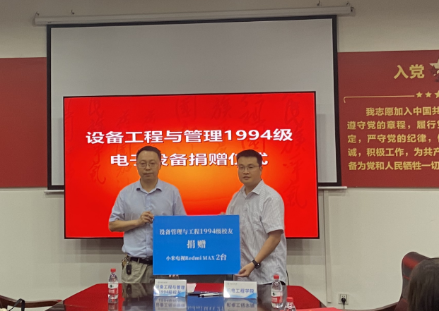 按照捐贈協議,設備工程與管理94級校友向機電工程學院捐贈2臺100寸智能電視,用于學院教學、講座、會議等工作。機電工程學院院長韓傳軍代表學校接受了捐贈,并向校友頒發了捐贈證書。