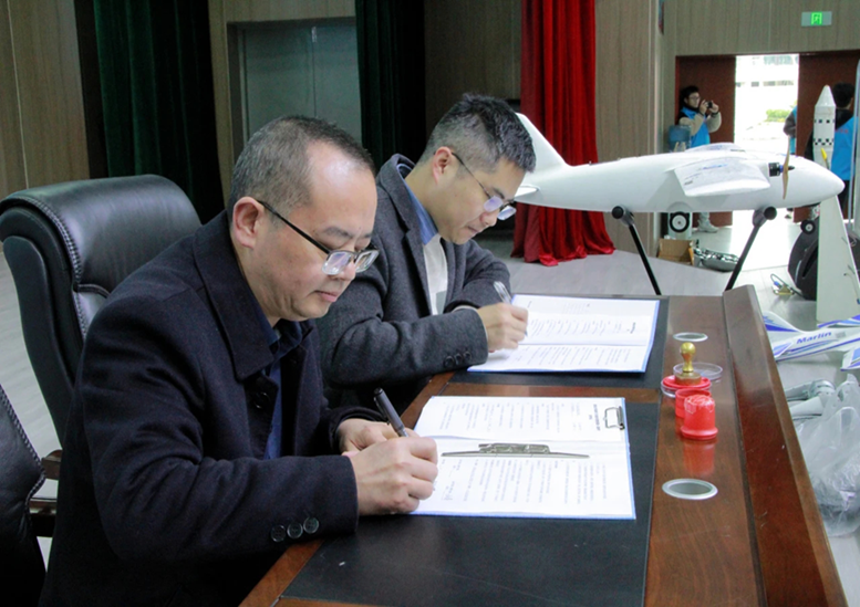 圖2.儀隴中學副校長田正榮與機電工程學院副院長蔡燦簽訂合作協議書