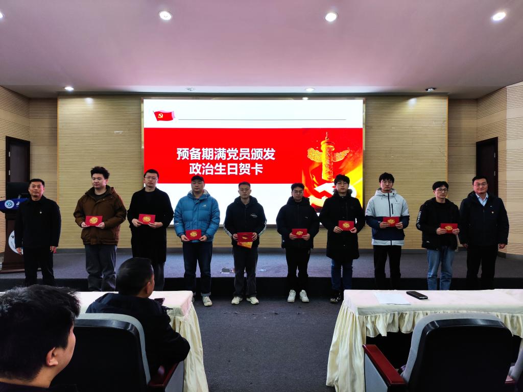 黨委委員為轉(zhuǎn)正黨員頒發(fā)政治生日賀卡