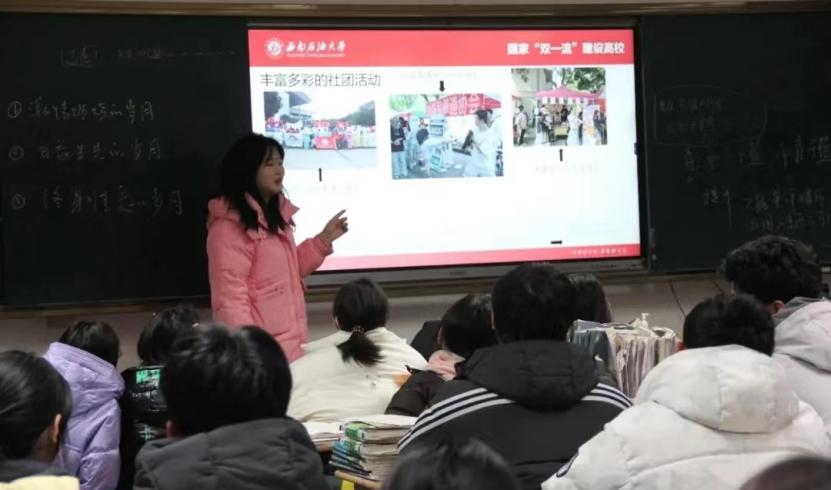 時序更替,不忘來路。學院積極組織開展鮭魚計劃2024年“感恩高中母校,分享石大青春”社會實踐活動。學子們通過開展個人成長匯報會、學習經驗交流會、資助政策宣傳普及會、學院專業宣講會等活動形式,多角度、全方位地向母校廣大高中生展現了我校的辦學理念和特色。在傾囊相授學習經驗、分享大學生活的過程中,“明德篤志,博學創新”的石大學子形象躍然紙上。智能感知2023級劉睿源同學談到:“在整個活動過程中,我感受到了學弟學妹們的熱情和蓬勃向上的朝氣,以及學弟學妹們心中對于未來的憧憬,還感受到了作為學長,作為西南石油大學的一份子。宣傳石大,幫助這群可愛的學弟學妹們圓夢高考,不僅是一份責任,更是一種擔當。”