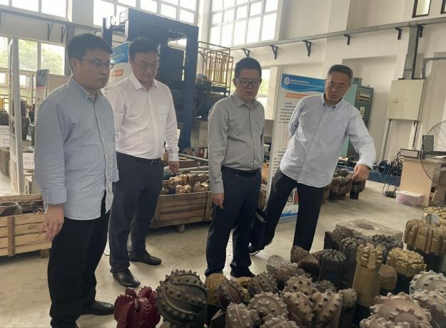 張明書記首先到機電院鉆頭實驗室參觀交流,鉆頭所主任楊迎新教授介紹了鉆頭研究所近年來取得的特色技術及市場推廣情況,對鉆頭所的未來發展定位和發展目標進行了匯報交流。張明書記指出“鉆井破巖與鉆頭”研究方向是我校的傳統特色科研方向,在國內外具有廣泛的影響力,鉆頭所科研人員要繼續發揚老一輩的科研務實精神,利用自身優勢進一步推進科技成果轉化工作,進一步擴大國內、國際影響力,多出成果、出好成果。