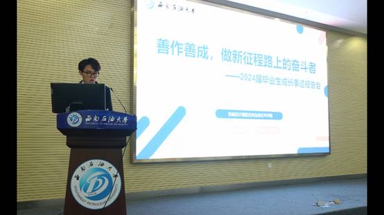 4月25日晚,主題為“講述成長故事 傳承榜樣力量”的2024屆優秀畢業生成長事跡報告會在明志樓B105舉行了,學院7位2024屆優秀畢業生代表多角度講述各自的大學成長經歷。畢業班輔導員徐博、龔清能、黃馨月以及學院2023級150余名同學參加此次報告會。