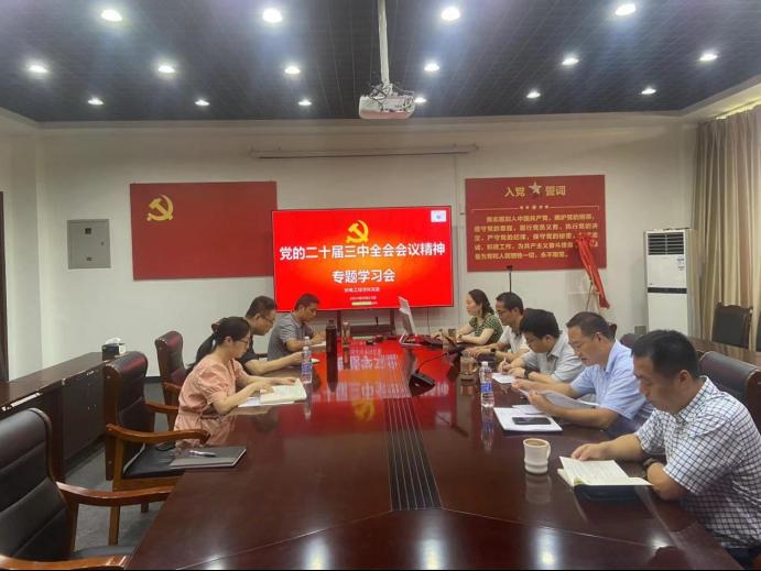 8月23日下午,機電工程學院在B504會議室召開黨委中心組學習擴大會議,專題學習黨的二十屆三中全會精神,部署貫徹落實工作。全體黨委委員、科級以上干部參加了會議。