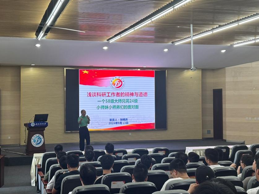 學院充分挖掘優質教育教學資源,創新教育教學方式,緊密聯系行業發展實際,設置了特色教育教學環節。特別邀請學校首屆畢業生張明洪教授與新生面對面“聊校史、話擔當”,幫助新生更好地了解學校發展歷程,體悟學校精神文化,增強新生的歸屬感、認同感和榮