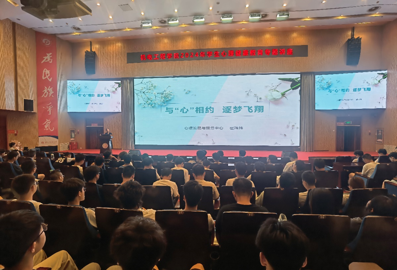 為幫助新生樹立心理健康意識,擁有良好心理素質,提高心理承受能力,保持良好心態。機電院邀請校心理發展與服務中心心理健康教研室主任翟瑋煒老師為新生開展了心理健康講座。講座以“與心相約,逐夢飛翔”為主題,引導新生認識、察覺、重視自己的心理健康,能夠識別、判斷自身心理健康狀況變化,對待即將面對的各種心理問題要能夠進行初步的自我調適和科學應對。