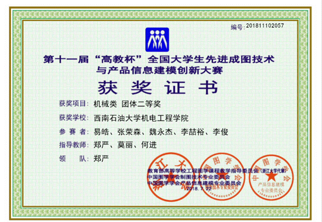 “高教杯”全國大學生先進成圖技術與產品信息建模創新大賽是由教育部高等學校工程圖學課程教學指導委員會、中國圖學學會制圖技術專業委員會、中國圖學學會產品信息建模專業委員會聯合主辦的圖學類課程最高級別的國家級賽事。大賽的目的在于以賽促教,以賽促學,全面提高大學生的圖學素質與技能,為中國制造2025的戰略目標培養大量的優秀人才。該賽事由于規模大、水平高、參賽人數多,被譽為“圖學界的奧林匹克”,受到全國眾多工科類高校的重視與參與。