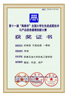 2018年7月20日—22日,第十一屆“高教杯”全國大學生先進成圖技術與產品信息建模創新大賽在江蘇省南京市南京工業大學舉辦,本屆比賽的參賽選手近過四千人。經過一學期刻苦的訓練,我校參賽團隊獲得了團體二等獎,張榮森、魏永杰、李俊三名同學突出重圍,均榮獲個人一等獎,易皓、李喆裕兩名同學均榮獲二等獎,王志遠、杜鑫、周童、錢程均榮獲三等獎。