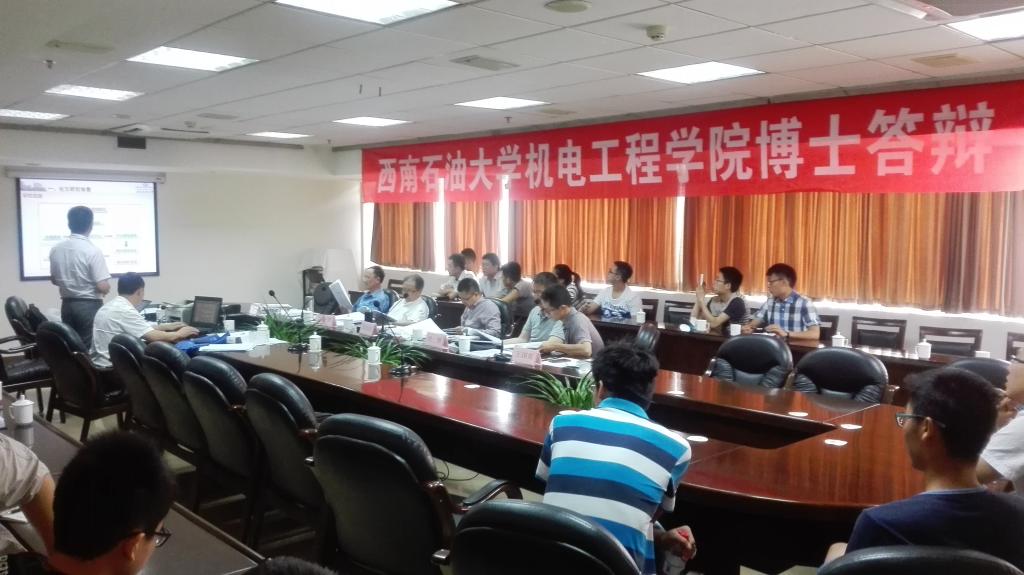 5月17日上午8:30,機電工程學院機械工程專業2015年申請博士學位論文答辯在石油緣賓館四樓會議室舉行。本次答辯委員會主席由西南交通大學機械工程學院王金諾教授擔任,委員分別為四川大學制造科學與工程學院的殷國富教授和西南石油大學機電工程學院的黃志強教授、杜堅教授和王國榮教授,答辯委員會秘書由李成兵副教授擔任。