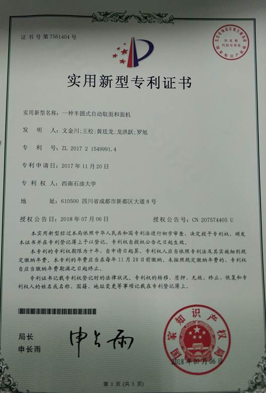 03序號支撐:一種半圓式自動取面和面機(ZL201721549991.4)