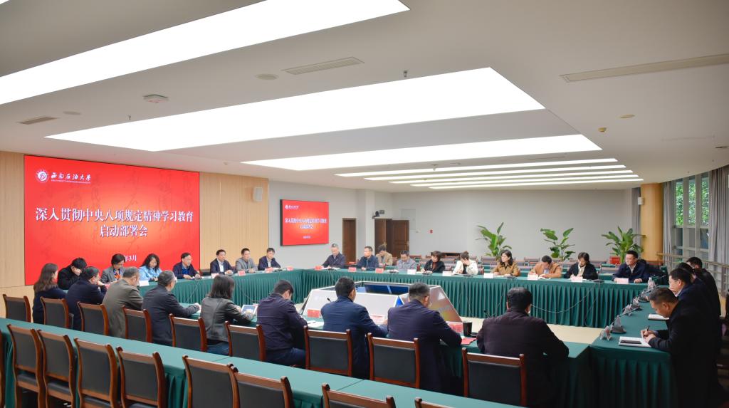3月25日上午,西南石油大學(xué)深入貫徹中央八項(xiàng)規(guī)定精神學(xué)習(xí)教育啟動(dòng)部署會(huì)在辦公樓212召開。校黨委書記張烈輝出席并主持會(huì)議。校領(lǐng)導(dǎo)、校黨的建設(shè)工作領(lǐng)導(dǎo)小組成員單位負(fù)責(zé)同志,各分黨委(黨總支)書記參加會(huì)議。