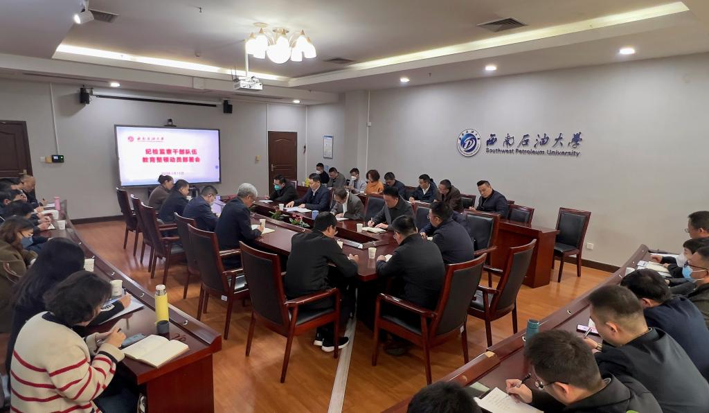 會議由駐校紀檢監察組副組長、校紀委副書記侯永剛主持。會上,侯永剛同志對《西南石油大學紀檢監察干部隊伍教育整頓實施方案》作了全面細致的解讀。校紀委委員、駐校組(校紀委辦、校巡察辦)全體人員、各二級單位紀委書記、黨總支紀檢委員參加會議。