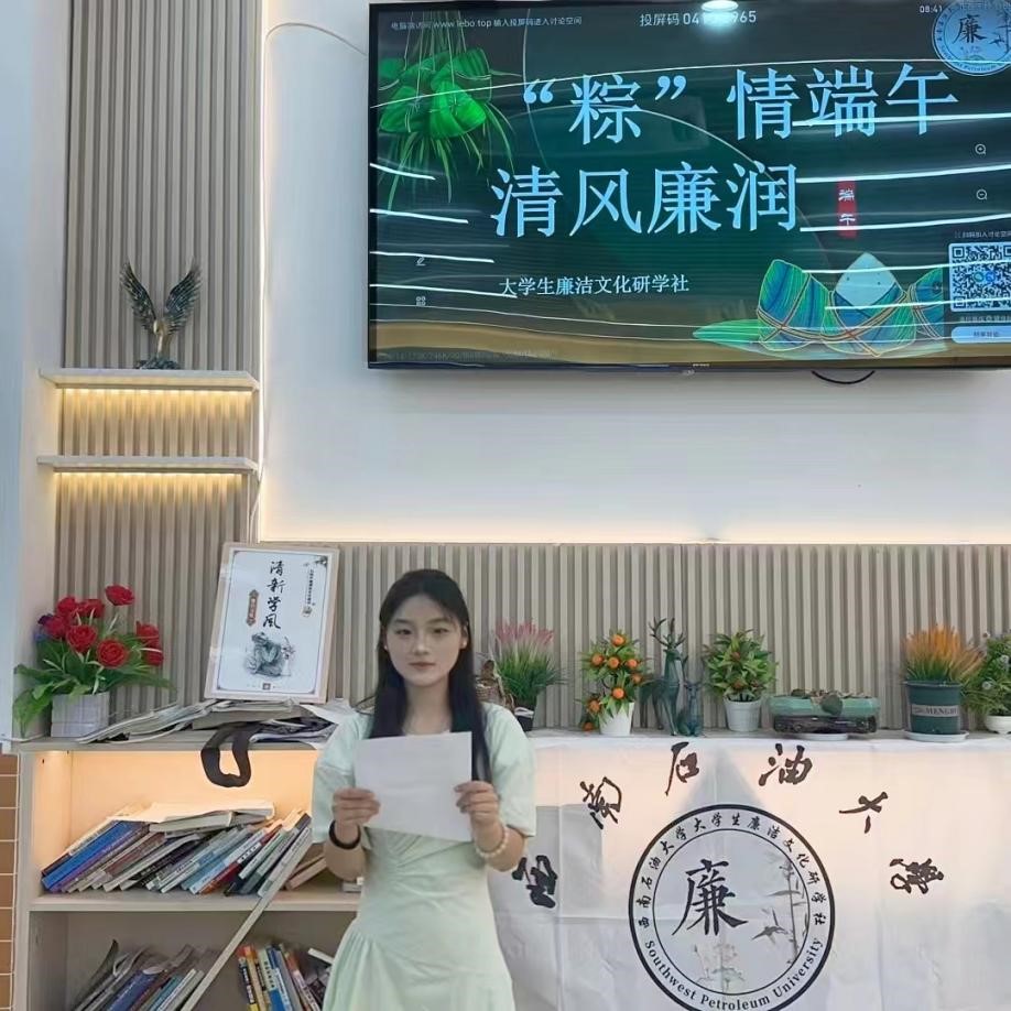 為進一步弘揚和傳承中華優秀傳統文化,加強廉潔文化教育,強化廉潔自律意識,切實營造崇廉尚潔的端午節日氛圍,大學生廉潔文化研學社在駐校紀檢監察組、校紀委指導下,于6月5日在一食堂舉辦了以觀廉影、包廉粽、寫廉字、談廉感、送廉粽為主線的“‘粽’情端午,清風廉潤”主題活動。