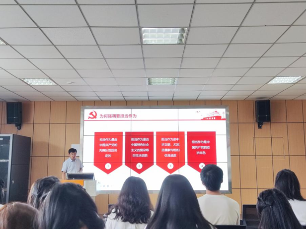 在廉潔教育講座會上,于百江主要從“新時代黨員如何擔當作為”和“青年人如何加強廉潔自律”兩個方面對專題黨課的內容進行講解。第一部分他對“擔當”的概念、意義、作用、精神內涵等進行了解讀,提出黨員同志要在堅定理想信念、具備擔當的能力素質、實際行動有作為等方面體現擔當行為。第二部分他以“總書記對青年的六個要求”引入,著重從“揚信念之帆”、“存敬畏之念”、“享知足之樂”三個方面對畢業生黨員提出加強自身廉潔自律的要求和建議。他通過條理清晰的講解以及對案例的剖析,為大家上了一堂精彩生動的廉潔教育黨課。