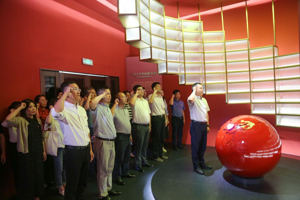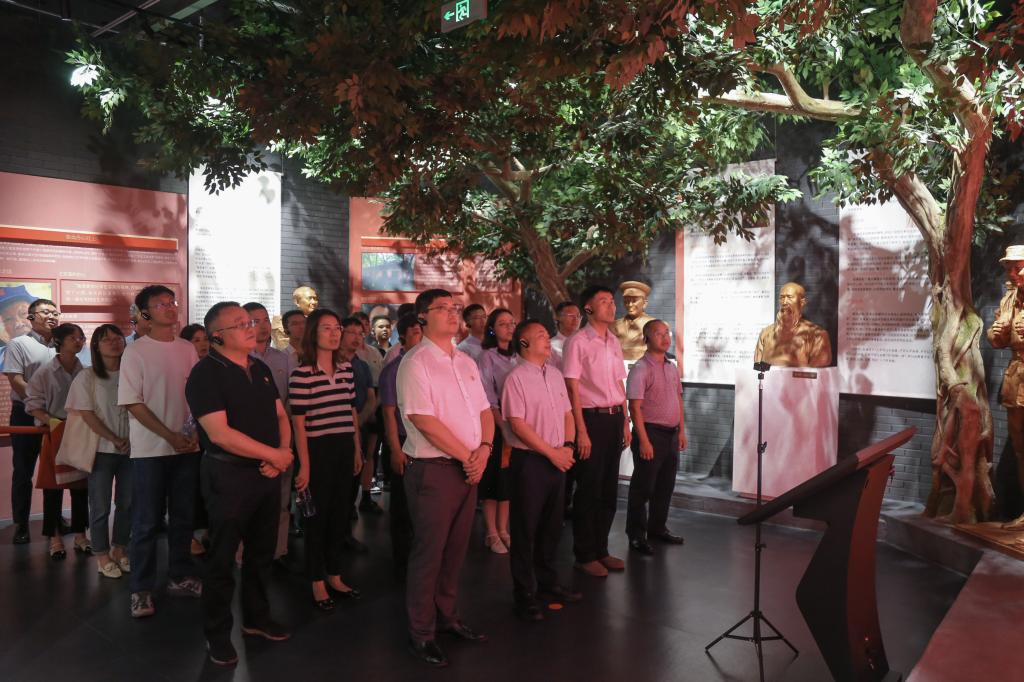 參觀期間,校區(qū)領(lǐng)導(dǎo)點亮了黨徽,重溫了入黨誓詞,感悟了初心使命,并帶領(lǐng)大家集體誦讀了紅色經(jīng)典文章《為人民服務(wù)》。在鏗鏘有力的誦讀聲中,深刻理解和領(lǐng)悟為人民服務(wù)的精神實質(zhì)和豐富內(nèi)涵。