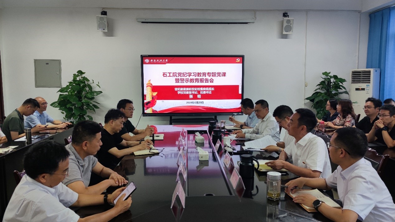 為推動(dòng)黨紀(jì)學(xué)習(xí)教育走深走實(shí),進(jìn)一步加強(qiáng)黨風(fēng)廉政建設(shè),增強(qiáng)黨員干部的黨紀(jì)法規(guī)意識(shí)、提高拒腐防變能力,教育引導(dǎo)黨員干部知敬畏、存戒懼、守底線,石油與天然氣工程學(xué)院于6月21日下午在明辨樓B519開展了黨紀(jì)學(xué)習(xí)教育專題黨課暨警示教育報(bào)告會(huì),特邀駐校紀(jì)檢監(jiān)察組組長(zhǎng)、校黨委副書記、紀(jì)委書記、黨委巡察工作領(lǐng)導(dǎo)小組常務(wù)副組長(zhǎng)張明作了題為“扎實(shí)開展黨紀(jì)學(xué)習(xí)教育 做到學(xué)紀(jì)知紀(jì)明紀(jì)守紀(jì)”的專題黨課報(bào)告,會(huì)議由學(xué)院黨委副書記、紀(jì)委書記錢廣主持,學(xué)院教師黨支部書記、各所室長(zhǎng)、全體科級(jí)以上干部等50余人參加警示教育報(bào)告會(huì)。