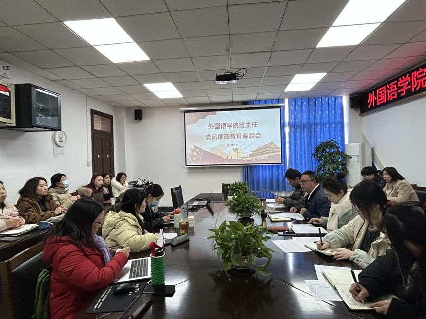 為進(jìn)一步加強(qiáng)黨風(fēng)廉政建設(shè),提高班主任隊(duì)伍的廉潔自律意識,外國語學(xué)院于2025年1月2日下午在思學(xué)樓AB406會議室召開了班主任黨風(fēng)廉政專題會議。會議由學(xué)院紀(jì)委書記周永華主持,全體班主任參加了此次會議。