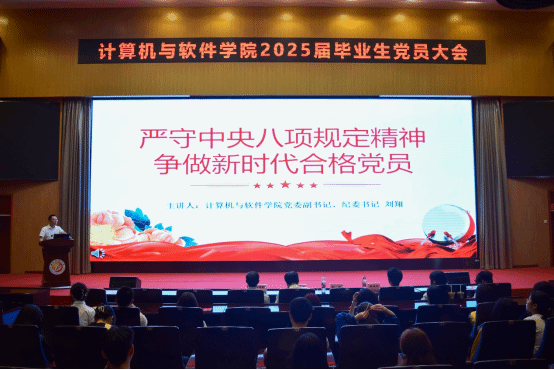 6月6日上午,計科院在圖書館學術報告廳開展2025屆畢業生黨員黨風廉政專題教育活動,學院黨委副書記紀委書記劉翔,學院分黨校指導老師廖俊怡,以及來自全院本碩2025屆的全體畢業生黨員參與了本次活動。