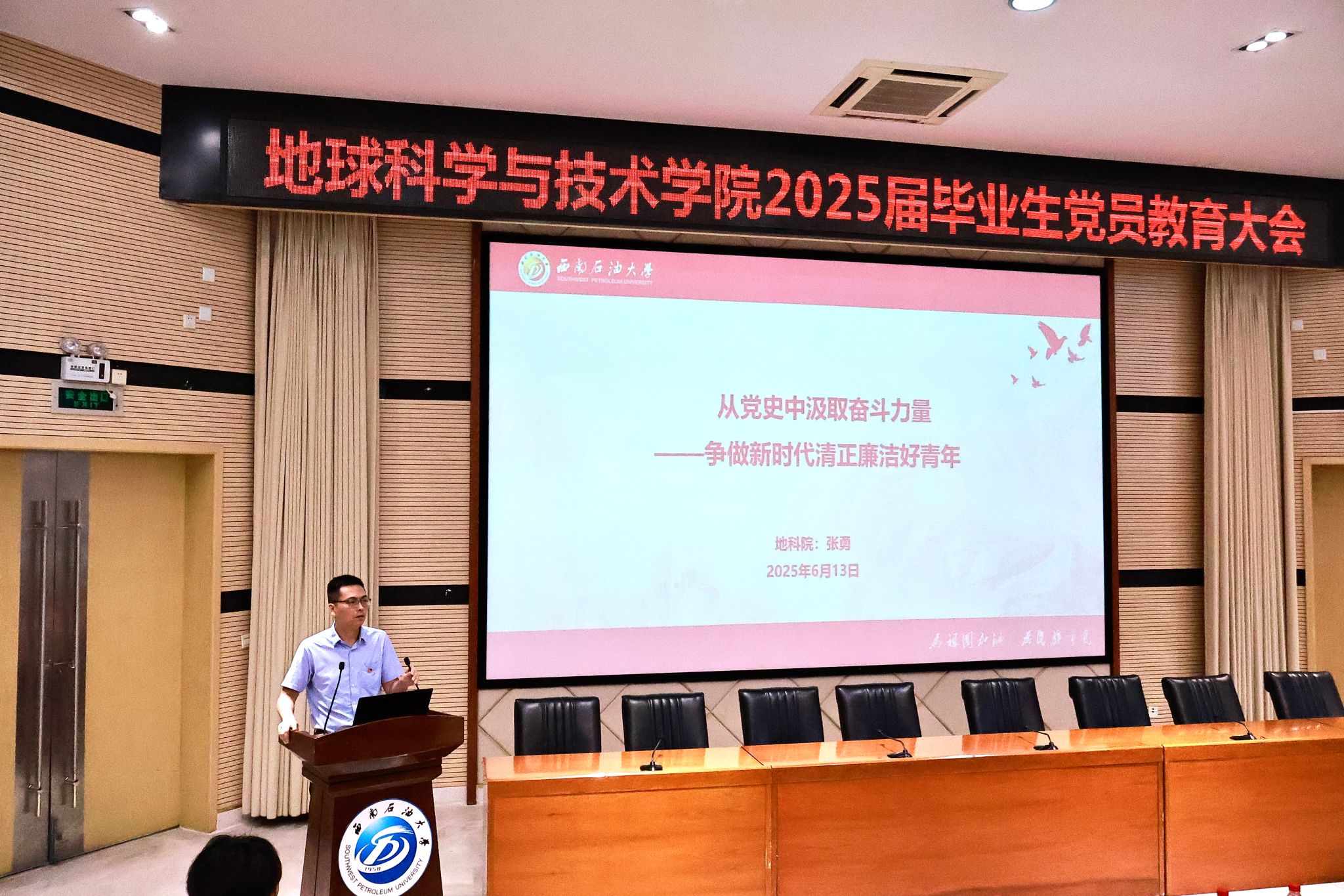 為進一步加強畢業生黨員黨性教育,強化黨員意識,6月13日上午,在思學樓A114組織召開地科院2025屆畢業生黨員專題教育大會。地科院黨委副書記、紀委書記張勇,研究生輔導員史格,本科生輔導員劉楊潔雅,全院畢業生黨員參加了本次專題教育大會。會議由地科院黨委組織員李明科主持。