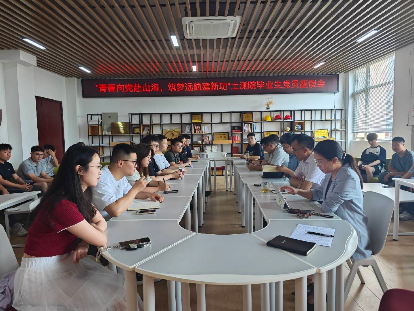 6月11日下午,土木工程與測繪學院2025屆畢業生黨員座談會在學院黨員之家舉行。學院黨委書記熊俊楠、院長甘丹、副書記何雨洋,副院長萬旭升和梁琦與畢業生黨員深入交流,共敘成長感悟、共謀學科發展、共話使命擔當。活動聚焦“黨建引領專業育人”主題,通過建言獻策、深情寄語與紀律黨課,彰顯新時代土測人的家國情懷和責任擔當。