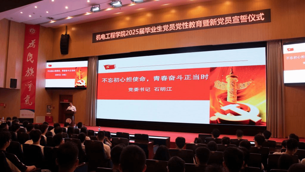 驪歌聲起,梔子飄香。2025年6月13日,機電工程學院在圖書館報告廳開展2025屆畢業生黨員專題黨課。學院黨委委員、畢業班輔導員、2025屆畢業生黨員參加了本次活動。