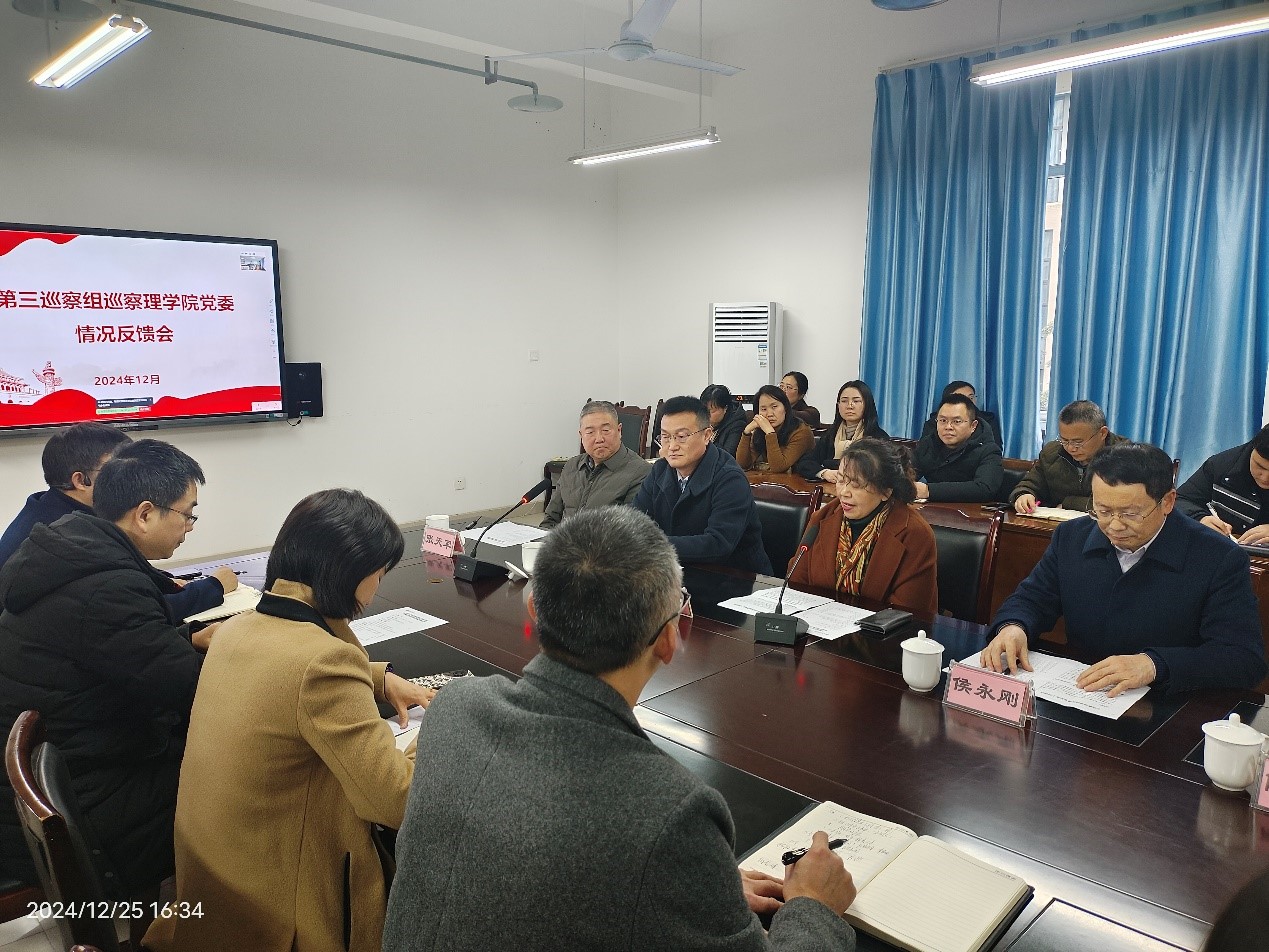 巡察辦公室負責人,各巡察組全體成員,化工院、計科院、理學院、經管院、馬克思主義學院、藝術學院領導班子成員、科級干部、教研室主任、黨支部書記和師生代表參加會議。
