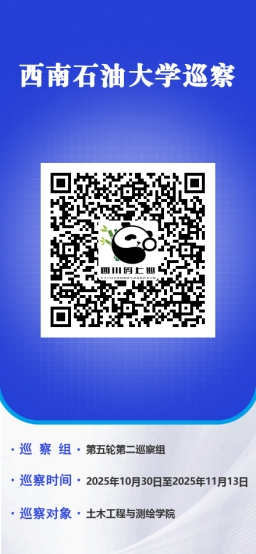 按照校黨委要求和巡察工作領(lǐng)導(dǎo)小組安排,校黨委第二巡察組從2025年10月30日至11月13日對(duì)學(xué)院黨委開展巡察。根據(jù)巡視工作條例和《中共西南石油大學(xué)委員會(huì)巡察工作辦法》規(guī)定,巡察組巡察期間受理反映土木工程與測(cè)繪學(xué)院領(lǐng)導(dǎo)班子及成員、下一級(jí)黨組織主要負(fù)責(zé)人等干部問題的來信來訪,重點(diǎn)是關(guān)于違反政治紀(jì)律、組織紀(jì)律、廉潔紀(jì)律、群眾紀(jì)律、工作紀(jì)律、生活紀(jì)律以及違反中央八項(xiàng)規(guī)定精神方面的舉報(bào)和反映。對(duì)其他與巡察工作無直接關(guān)系的個(gè)人訴求,轉(zhuǎn)交被巡察單位和有關(guān)部門處理。師生員工如有舉報(bào)和反映問題的,可以通過電話、電子郵箱、掃描“四川碼上巡”二維碼等渠道與巡察組聯(lián)系。