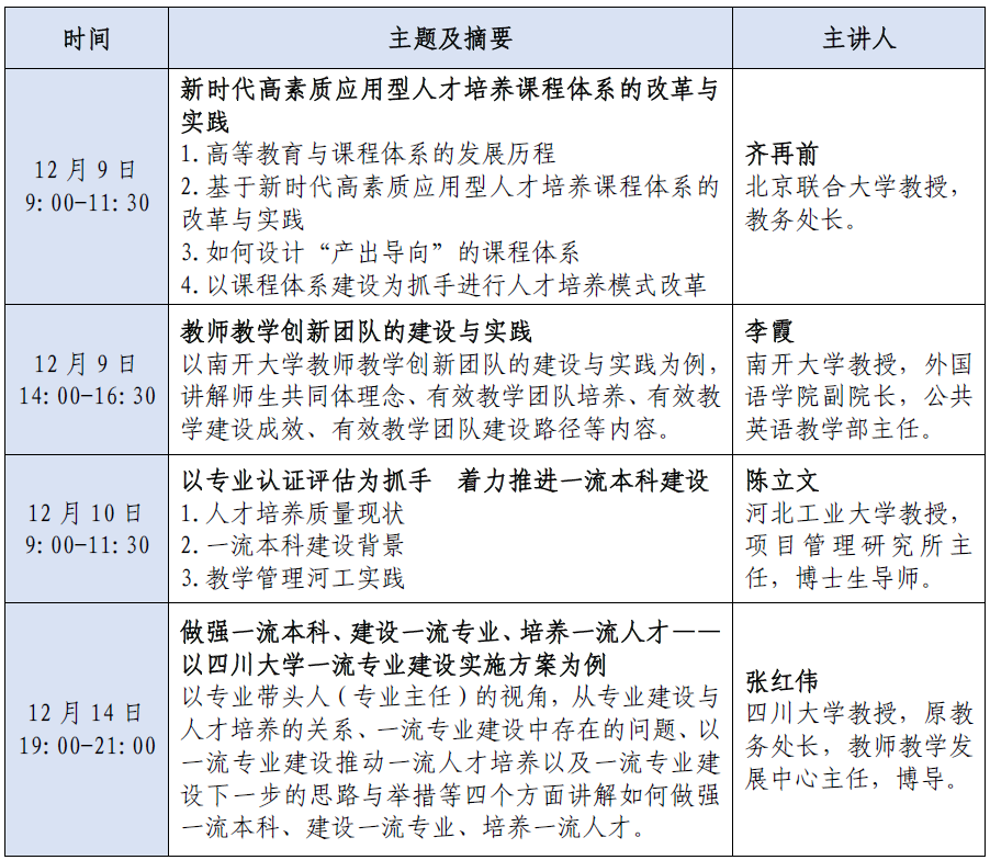 各教學單位專業帶頭人、專業負責人、教學團隊負責人等,研修人數不超過50人。