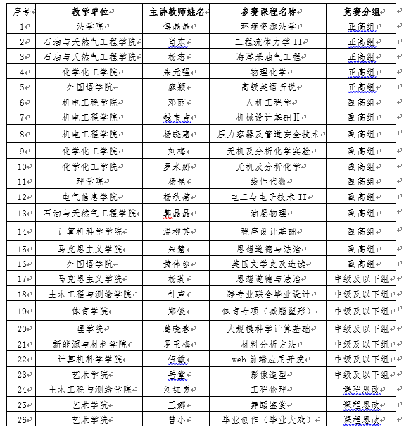 為選拔優秀教師參加第四屆四川省普通本科高校教師教學創新大賽,同時發揮教學競賽的引領和推動作用,本著以賽促教、選訓結合的原則,學校在11月21日-27日舉行第四屆四川省普通本科高校教師教學創新大賽校內選拔活動,根據專家評審結果,結合“夢蹊-質量獎”結果,現將入圍“第四屆四川省普通本科高校教師教學創新”種子選手營的名單公布如下:
