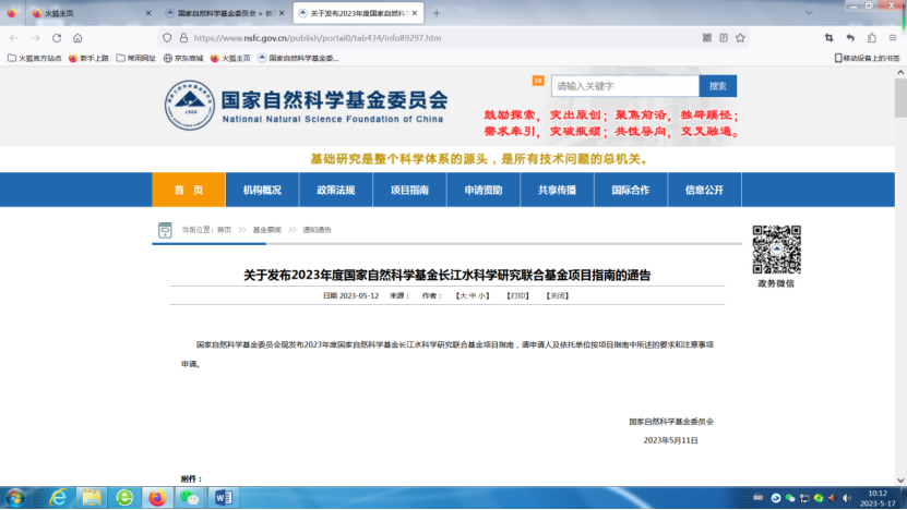 關于發(fā)布2023年度國家自然科學基金長江水科學研究